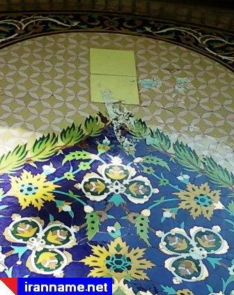 این اثر ارزشمند در حال حاضر در برخی قسمتها دچار ترک خوردگی و تخریب شده و دخالتهایی نیز با نصب دریچه و نقاشی ناشیانه روی آن، در این اثر انجام شده است.