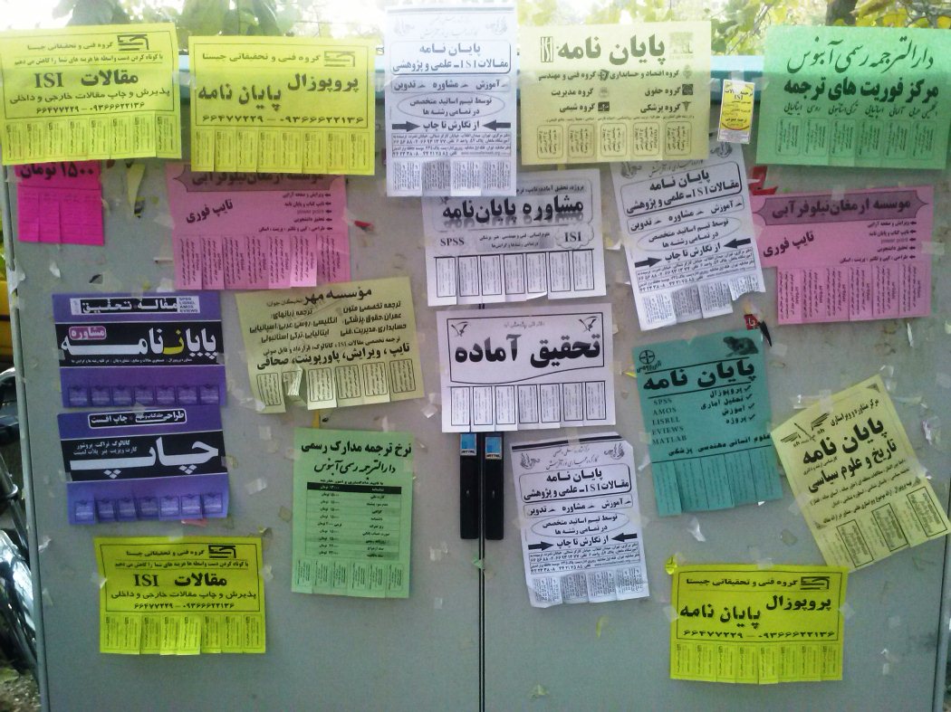 اما مشکل اینجاست که در این زمینه و در ایران دارد کم کم از شور به در میشود. چند مقاله در خبرآنلاین در این مورد آورده شده است. (بخوانید: این، این، و این). این مشکل فقط به دانشگاههای ایران محدود نمانده، بلکه بخشی از دانشجویان ایرانی خارج از کشور نیز آن داخل گردیدهاند. با پایین ماندن نرخ ارز سیل دانشجویان ایرانی که زندگی و تحصیل در خارج از کشور را ارزان یافتند، به راه افتاد. با ترقی نرخ دلار به سه برابر در مدت کمتر از یک سال، این گرایش در دانشجویان پدید آمد که هر چه زودتر فارغالتحصیل شود و بسیاری این سریعترین راه را با گذر از دکان دلالان مقاله و پایاننامه در مقابل دانشگاه تهران پیدا کردهاند.