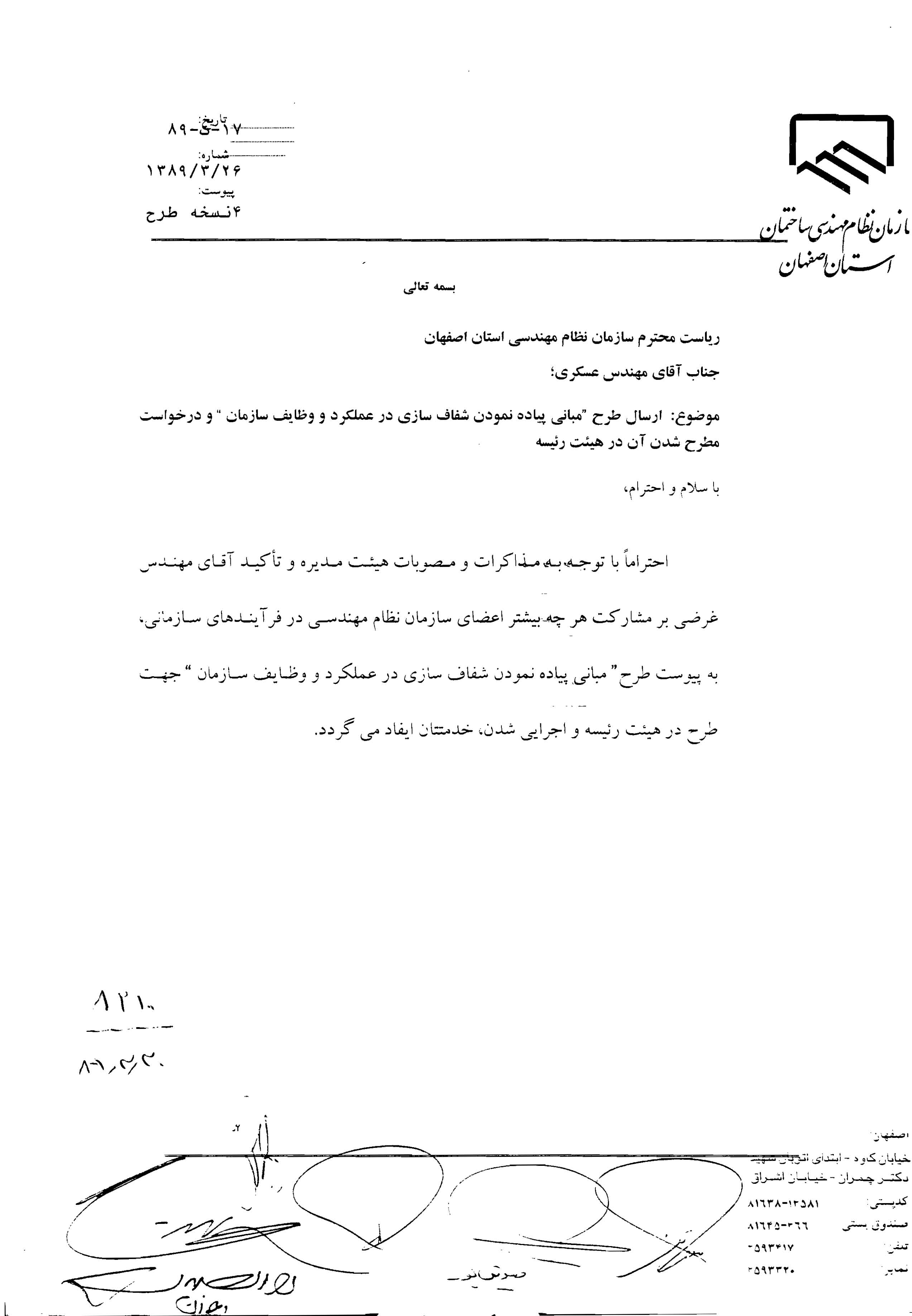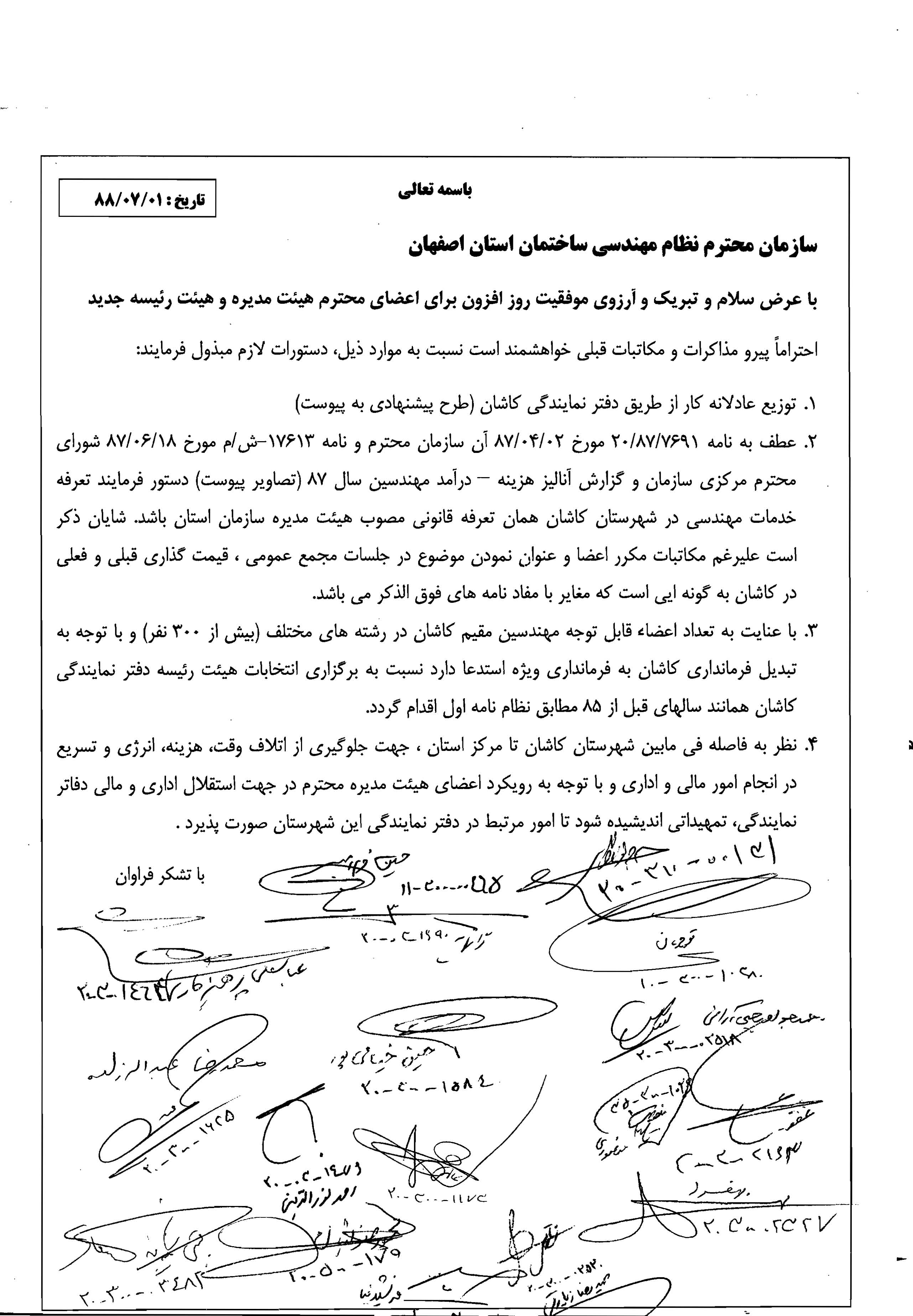 متنی که در ادامه آمده، شرح خدمات انجام گرفته توسط هیئت رئیسه سال سوم از دوره پنجم هیئت مدیره سازمان نظام مهندسی استان اصفهان است و امیدوارم بتوانم خدمات سایر اعضای هیئت مدیره فعلی و دوره های قبل و یا هر شخصی که خدمتی برای سازمان انجام داده است را در نوشتارهای بعدی بیان کنم.