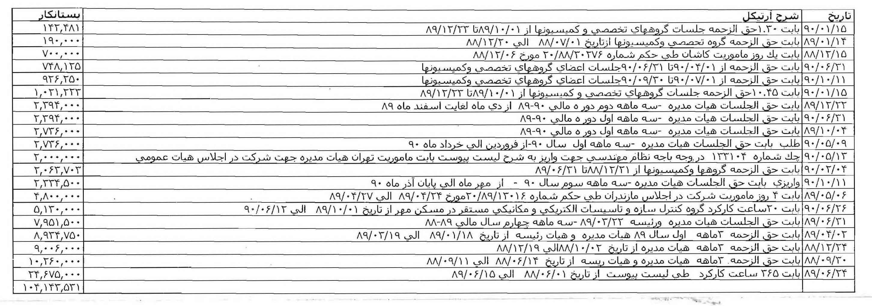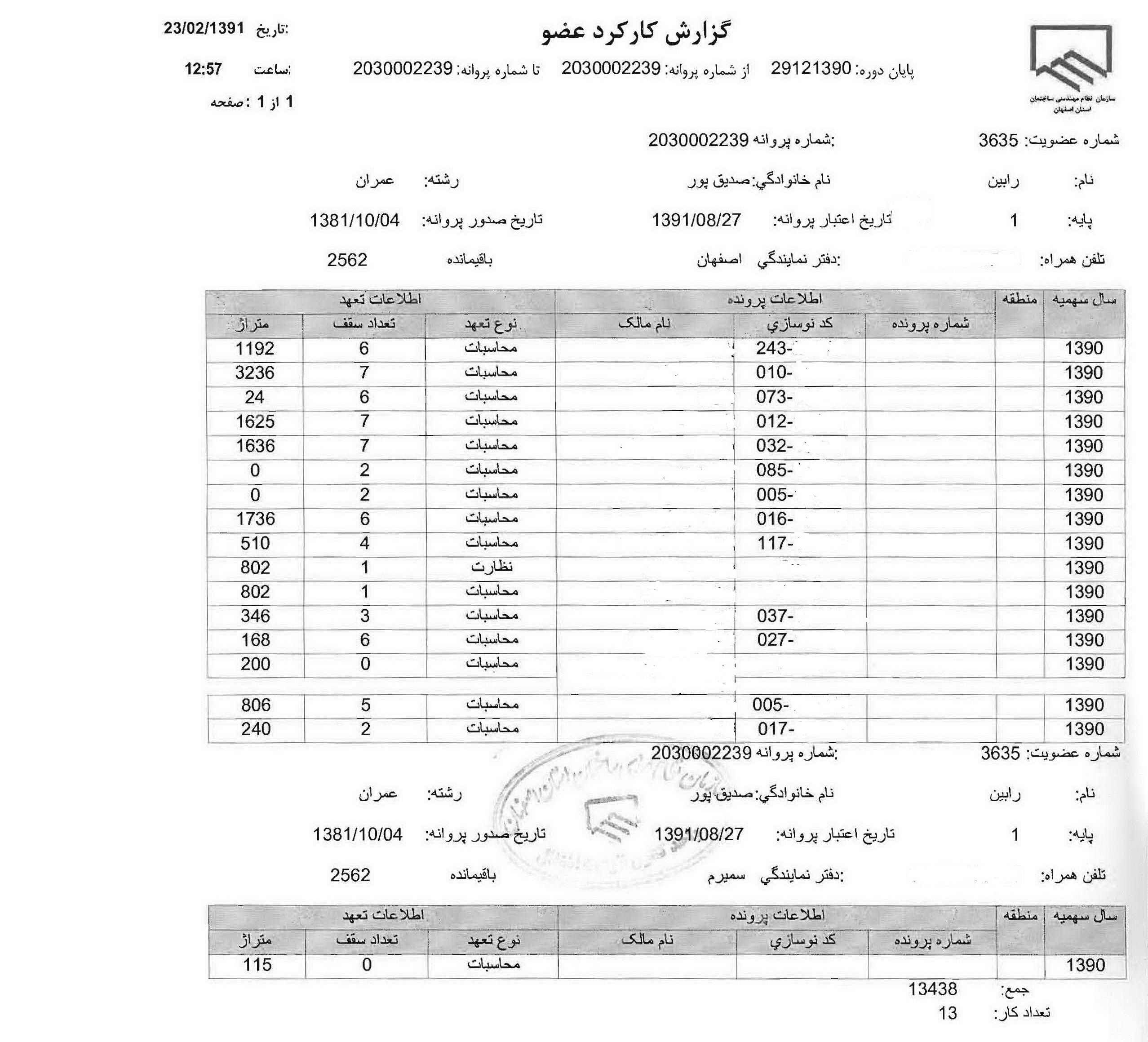 1- بازپرداخت کلیه مطالبات مهندسان ناظر که از قرارداد آنها بیش از 3 سال گذشته بود و آزاد کردن 90% حق الزّحمه پروژه هایی که به مرحله اجرای فونداسیون می رسند.